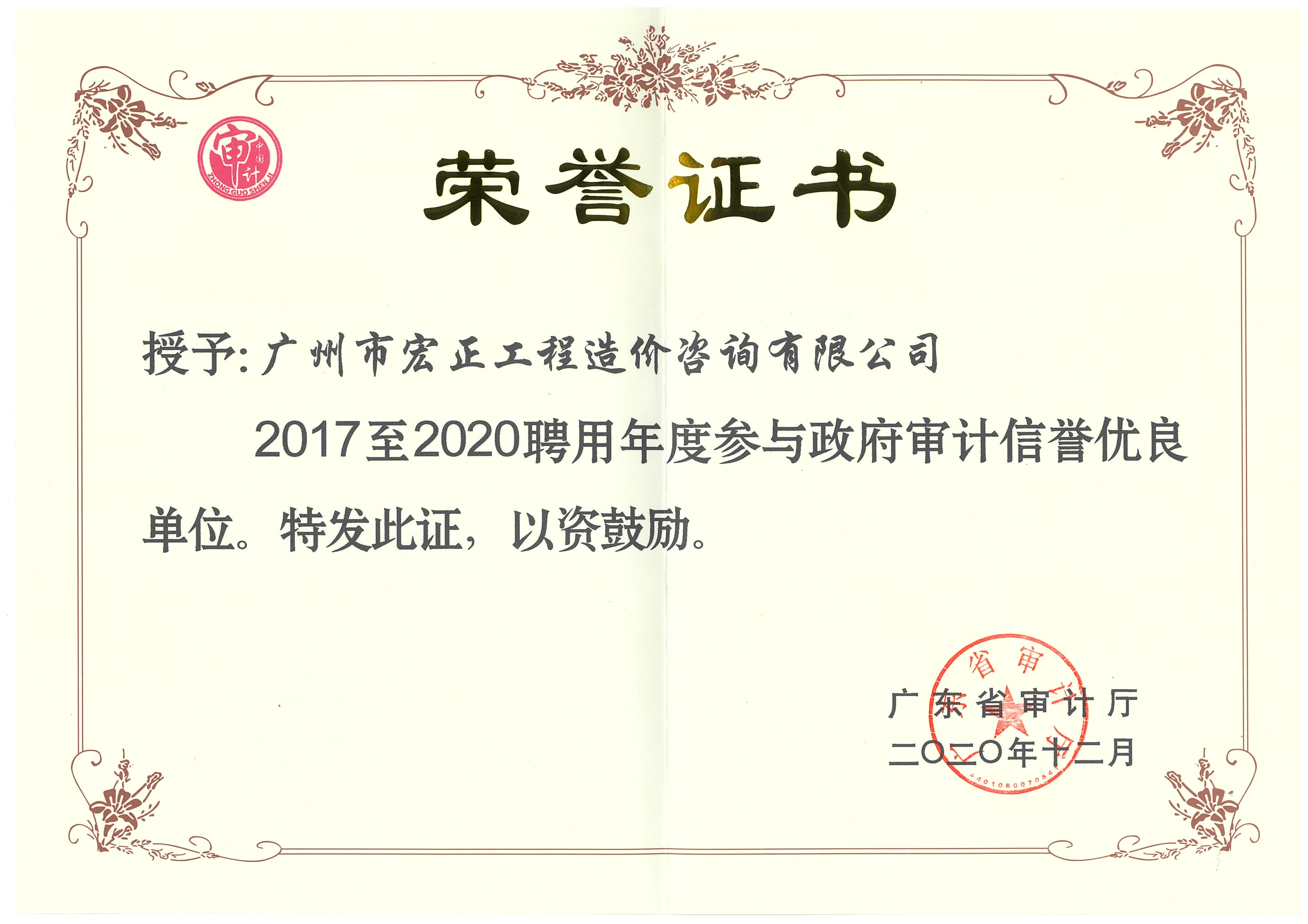 廣東省審計廳信譽優(yōu)良單位(2017年至2020年)