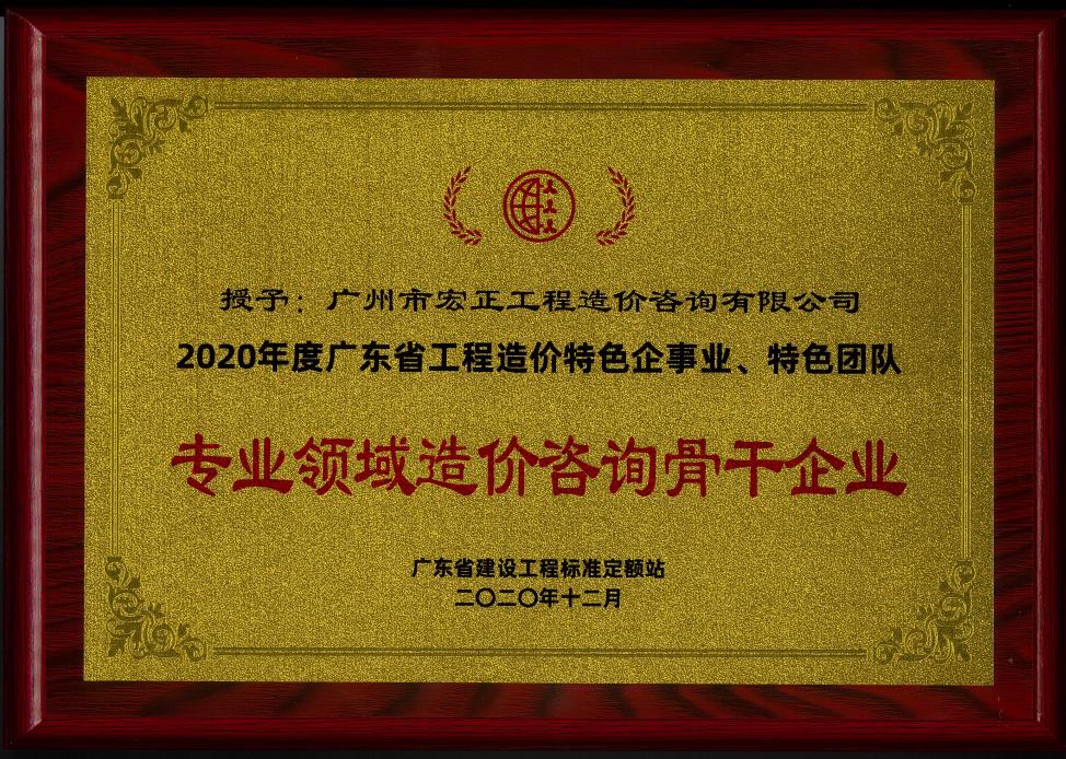 廣東省定額站專業(yè)領(lǐng)域造價咨詢骨干企業(yè)